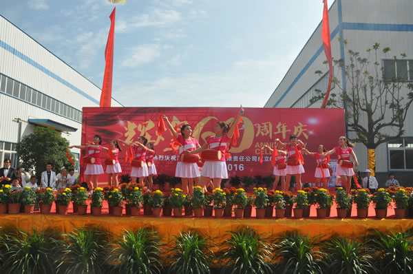 伴隨著歡慶的鑼鼓,飄揚著慶賀的彩旗,慶典場面隆重而壯觀。參加紀念慶典的有武漢市新洲區(qū)政府副區(qū)長李麗、駐公司軍代表、區(qū)委統(tǒng)戰(zhàn)部、總工會和相關部門領導、部分客戶和供應商代表、公司駐全國各地分公司負責人、公司原歷任老領導和老員工代表、受公司和上級各級政府表彰的勞動模范和優(yōu)秀共產(chǎn)黨員及員工代表等380余人。會議由公司副董事長程正紅同志主持,總經(jīng)理陶力同志致歡迎詞,副區(qū)長李麗代表區(qū)委區(qū)政府致辭、原公司老廠長李宏操代表公司老領導和老同志致辭,會上還對公司有特殊貢獻的老領導和在職員工進行了授牌儀式,之后由董事長陶宏國同志代表全體股東和員工向全體參會人員致了答謝詞,最后,在豐富多彩的文藝表演節(jié)目后,結束了歡快熱烈的紀念慶典。