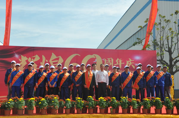 湖北高中壓閥門有限責任公司60周年紀念大會--勞模合影