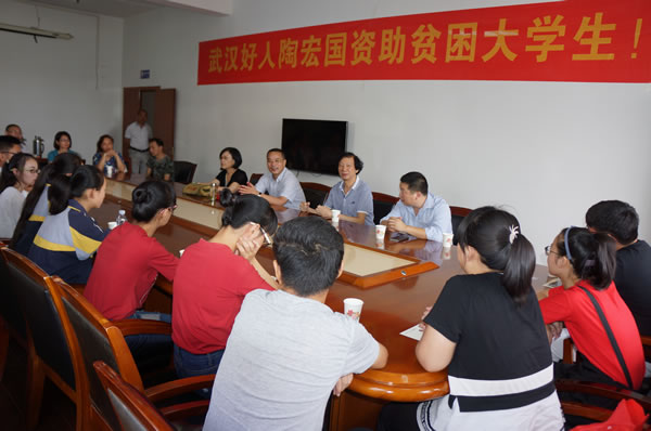 2016年8月27日上午,武漢好人、湖北高中壓閥門有限責任公司陶宏國董事長資助陽邏地區(qū)貧困學生活動在街道辦事處舉行,為陽邏22名貧困大學生發(fā)放了11萬元的助學金。